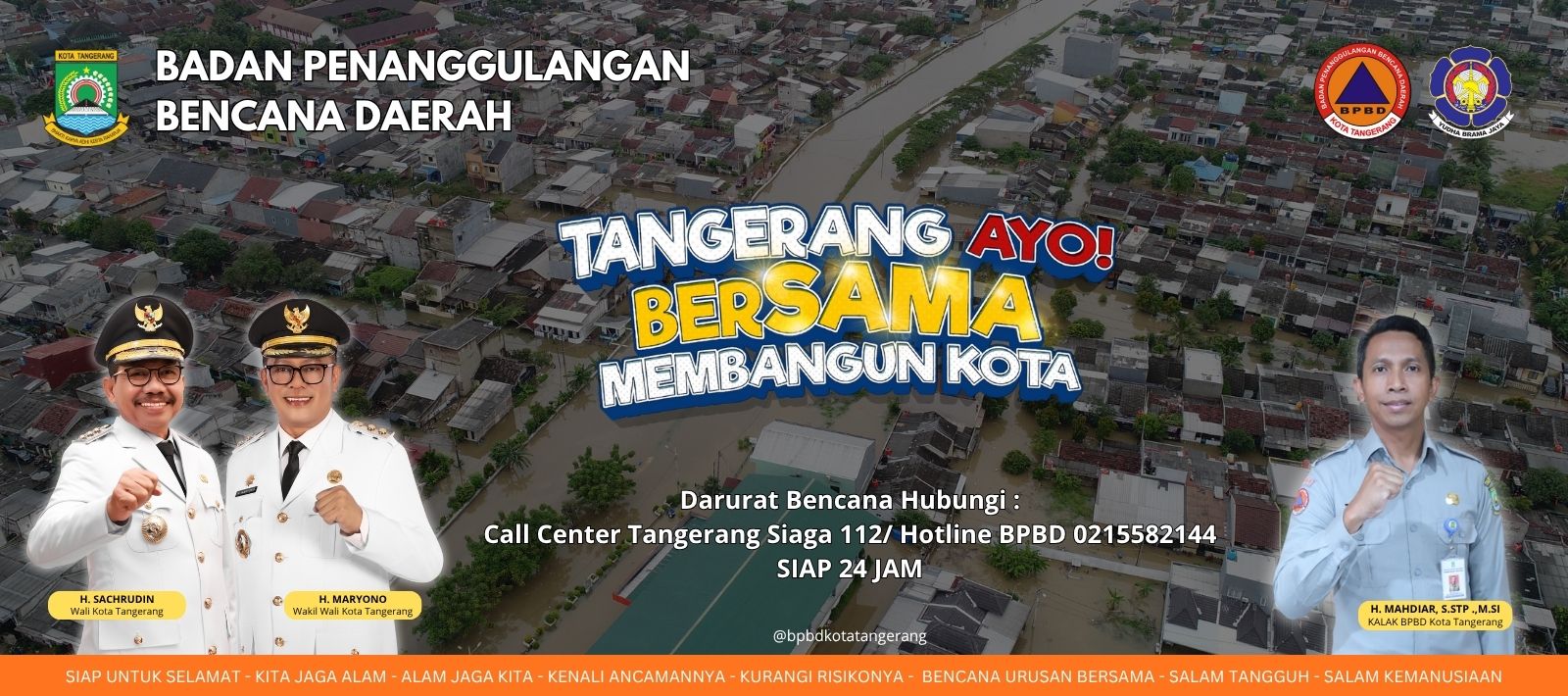Jl. Raya Daan Mogot No.67, RT.001/RW.001, Sukarasa, Kec. Tangerang, Kota Tangerang, Banten 15112 No. Telepon : 021 - 5582144 E-mail : bpbd@tangerangkota.go.id